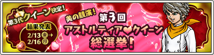 今年も開催 「アストルティアクイーン総選挙」 で、アストルティアクイーンが決まります!※ 2015/02/20 「第3代アストルティア・クイーン」の壁紙を公開しました。詳しくは 『 こちら 』 をご覧ください。