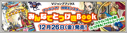 Vジャンプブックス「アンルシア! 仲間モンスター! みんなでとつげきBOOK」 ドラゴンクエスト 2014.12.212024.12.21 Vジャンプブックス「アンルシア! 仲間モンスター! みんなでとつげきBOOK」発売 (2014/12/26) - ドラゴンクエストX - 目覚めし冒険者の広場集英社のファンブック第5弾「アンルシア! 仲間モンスター! みんなでとつげきBOOK」が「スライムつむりの盾」「とつげき丸」のアイテムコードつきで発売!詳しくは 『 こちら 』 をご覧ください。 「スライムつむりの盾」「とつげき丸」 スライムつむりの盾とつげき丸