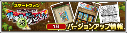 冒険者のおでかけ便利ツール バージョンアップ ドラゴンクエスト 2015.01.202025.07.13 冒険者のおでかけ超便利ツール バージョンアップ情報 (2015/1/20) - ドラゴンクエストX - 目覚めし冒険者の広場スマートフォン版「冒険者のおでかけ超便利ツール」のバージョンアップ情報です。詳しくは 『 こちら 』 をご覧ください。