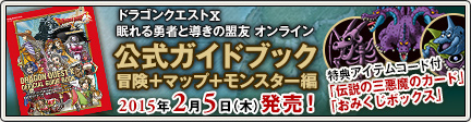 ドラゴンクエストX 公式ガイドブック 冒険+マップ+モンスター編 ドラゴンクエスト 2015.02.052025.03.20 「ドラゴンクエストX 公式ガイドブック 冒険+マップ+モンスター編」発売! (2015/2/5 更新) - ドラゴンクエストX - 目覚めし冒険者の広場「ドラゴンクエストX 眠れる勇者と導きの盟友 オンライン」の公式ガイドブック『冒険+マップ+モンスター編』がアイテムコードつきで、2015年2月5日(木)に発売します!※ 2015/2/5 本書の記載内容に誤りがございましたので、正しい情報...